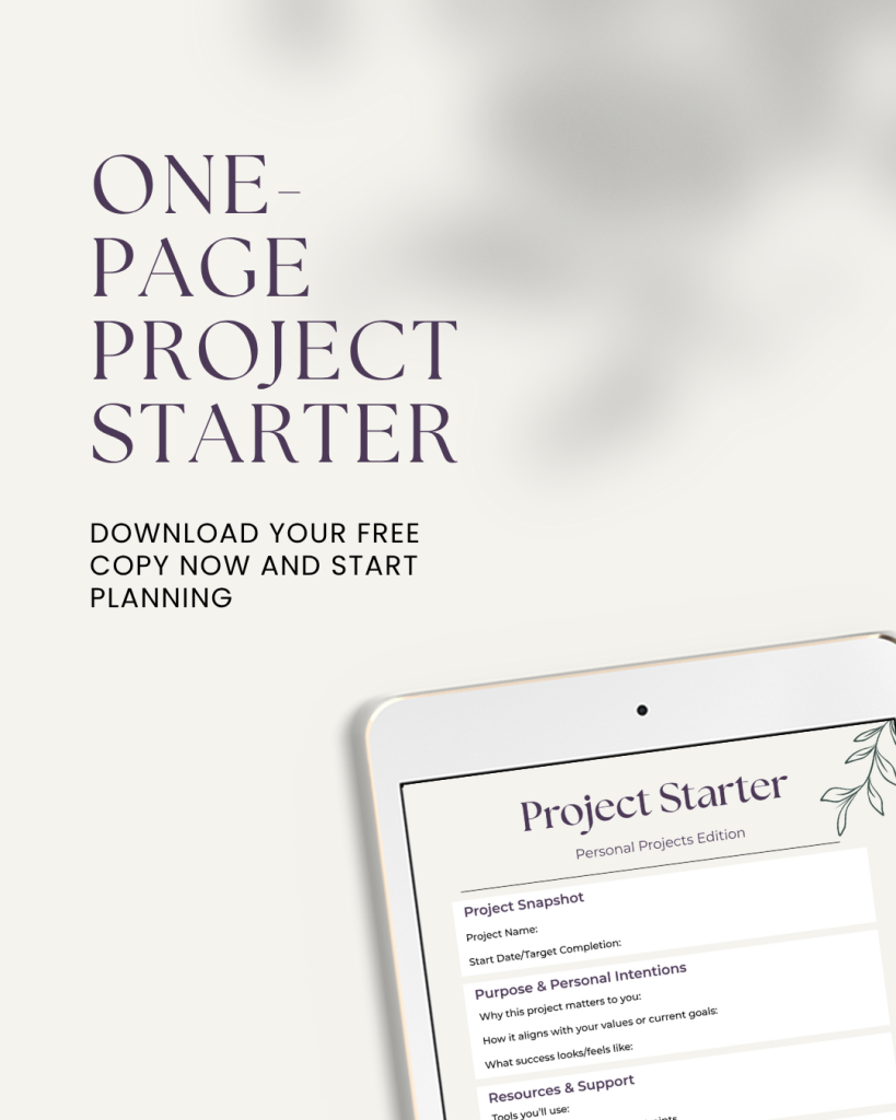 Whether you’re launching a passion project, organizing your creative ideas, or simply craving a fresh start, this one-pager is designed to guide you from intention to action. It’s simple, thoughtful, and totally doable.